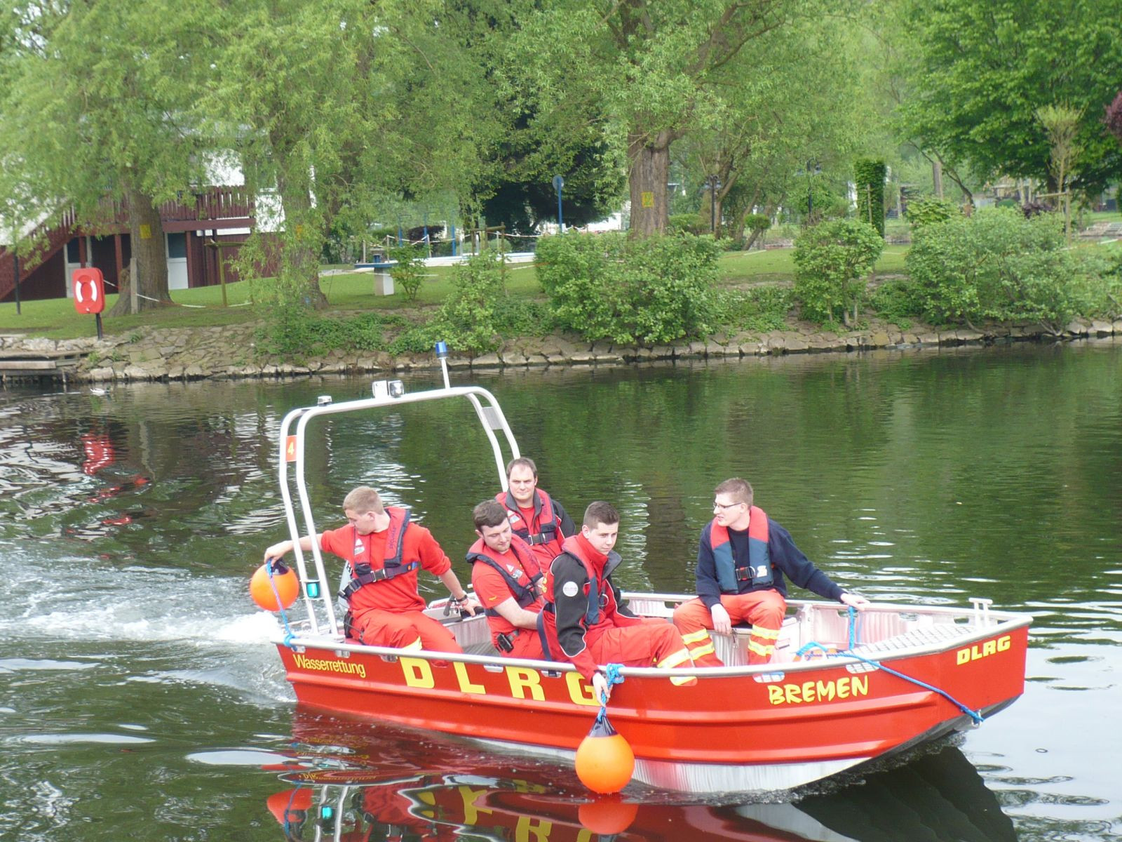 Die nächste zu erklimmende Hürde ergab sich dann in der Sicherstellung der Finanzierung. Das mit rund 30.000 Euro recht teure, dafür aber sehr gut ausgestattete, Rettungsboot wurde zu einem großen Teil von namhaften Unternehmen, Stiftungen und auch Privatpersonen bezahlt. Folgerichtig durfte mit Herrn Rolf Ostermann einer der Geldgeber auch als Taufpate für die „Bremen“ fungieren. Einige Vertreter der DLRG Bremen-Stadt, die maßgeblich zur Entwicklung und Beschaffung dieses Einsatzmittels beitrugen, wohnten der Zeremonie bei. Mit ihnen waren rund 200 Mitglieder der örtlichen Gliederungen und zahlreiche Vertreter von Presse und Öffentlichkeit anwesend.